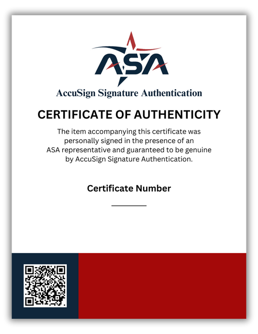 ASA In-the-Presence authenticated autographs are 100% genuine, and every collectible with an ASA Guaranteed Authentic certificate is backed for life!